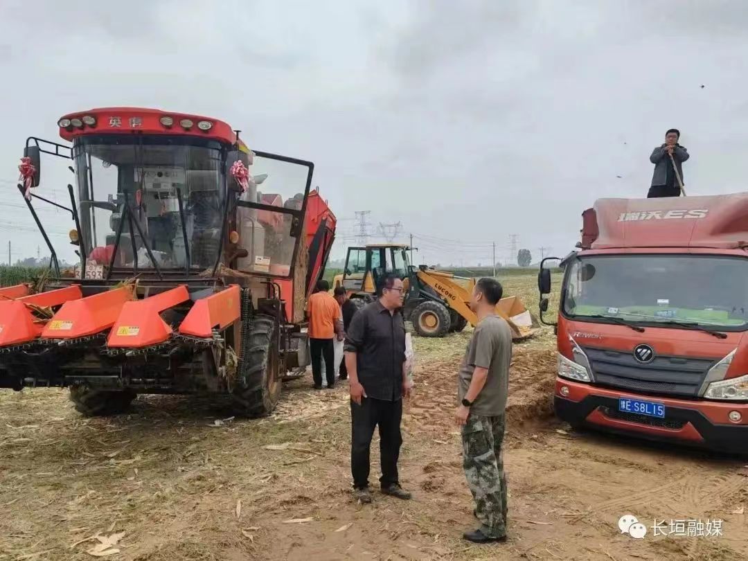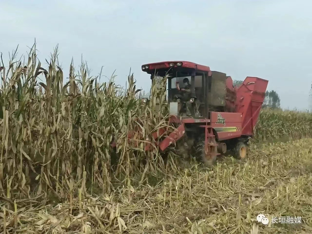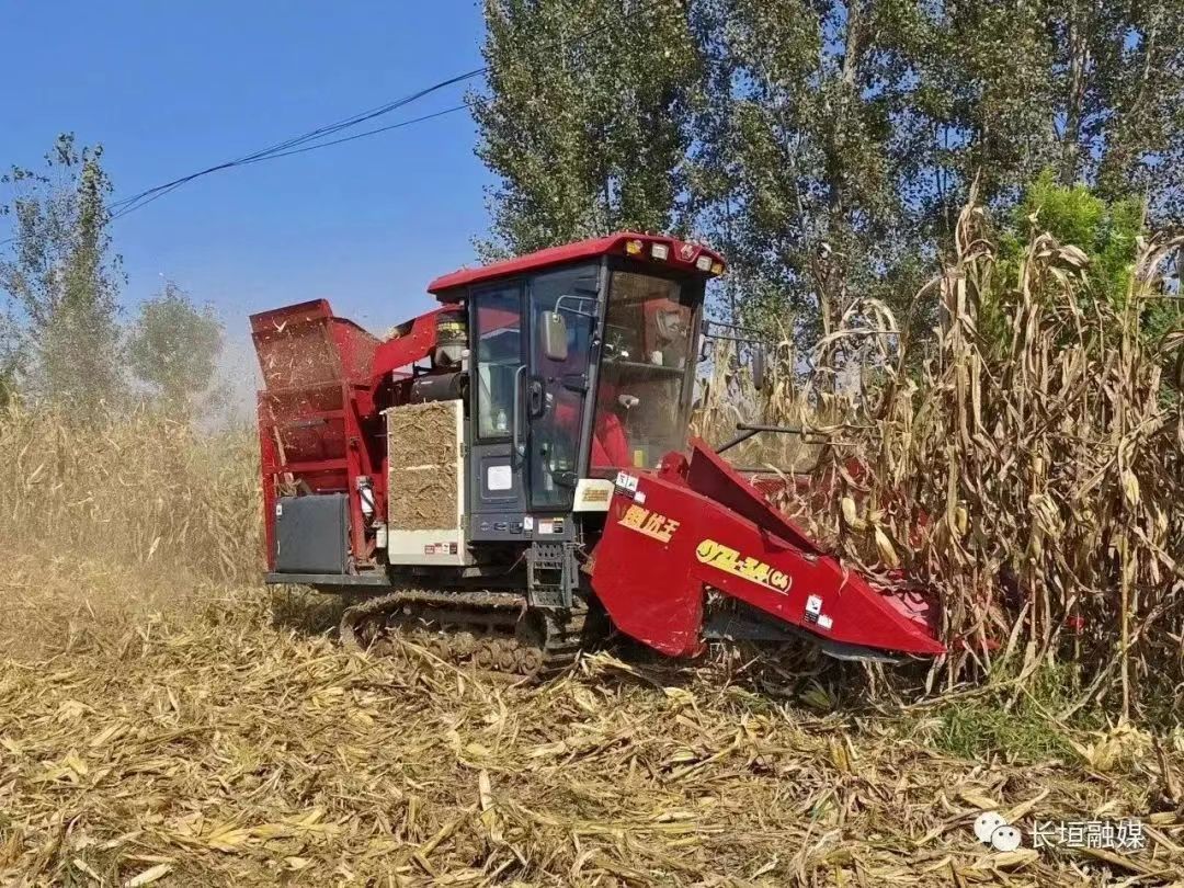 △武丘鄉灘丘村履帶玉米收獲機正在收割