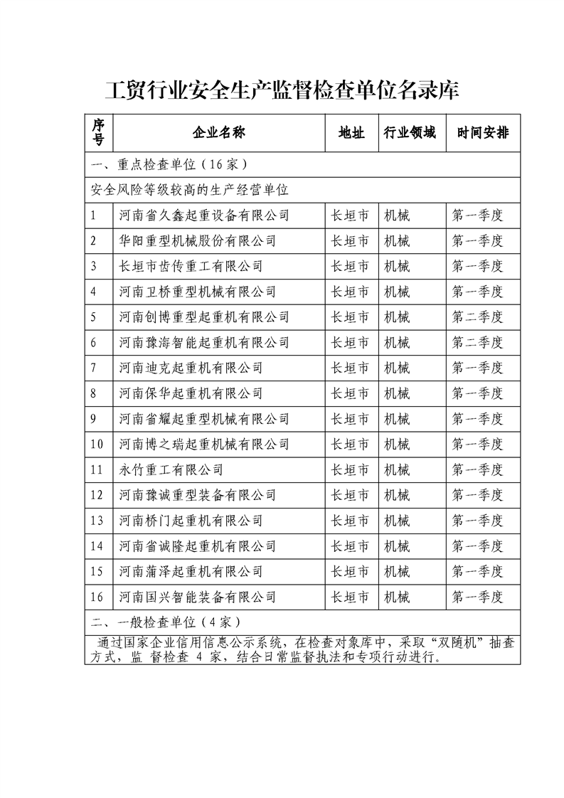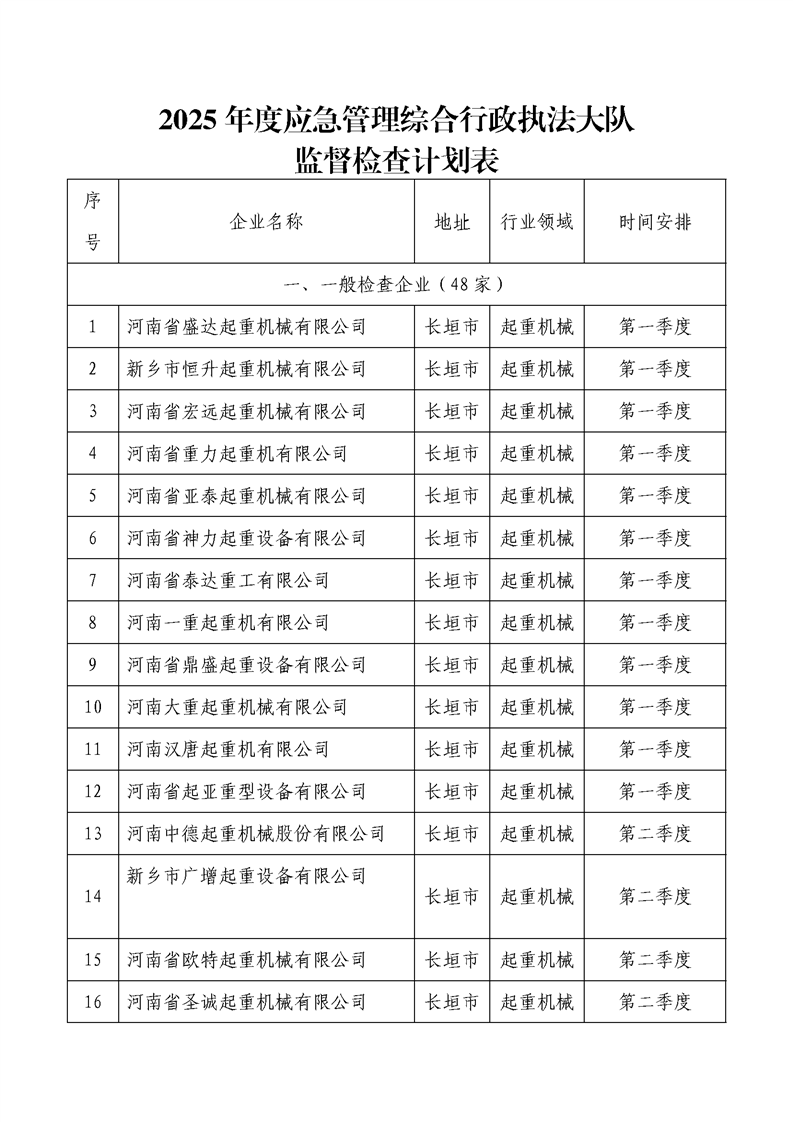 長垣市應急管理局2025年度安全生產監督檢查計劃