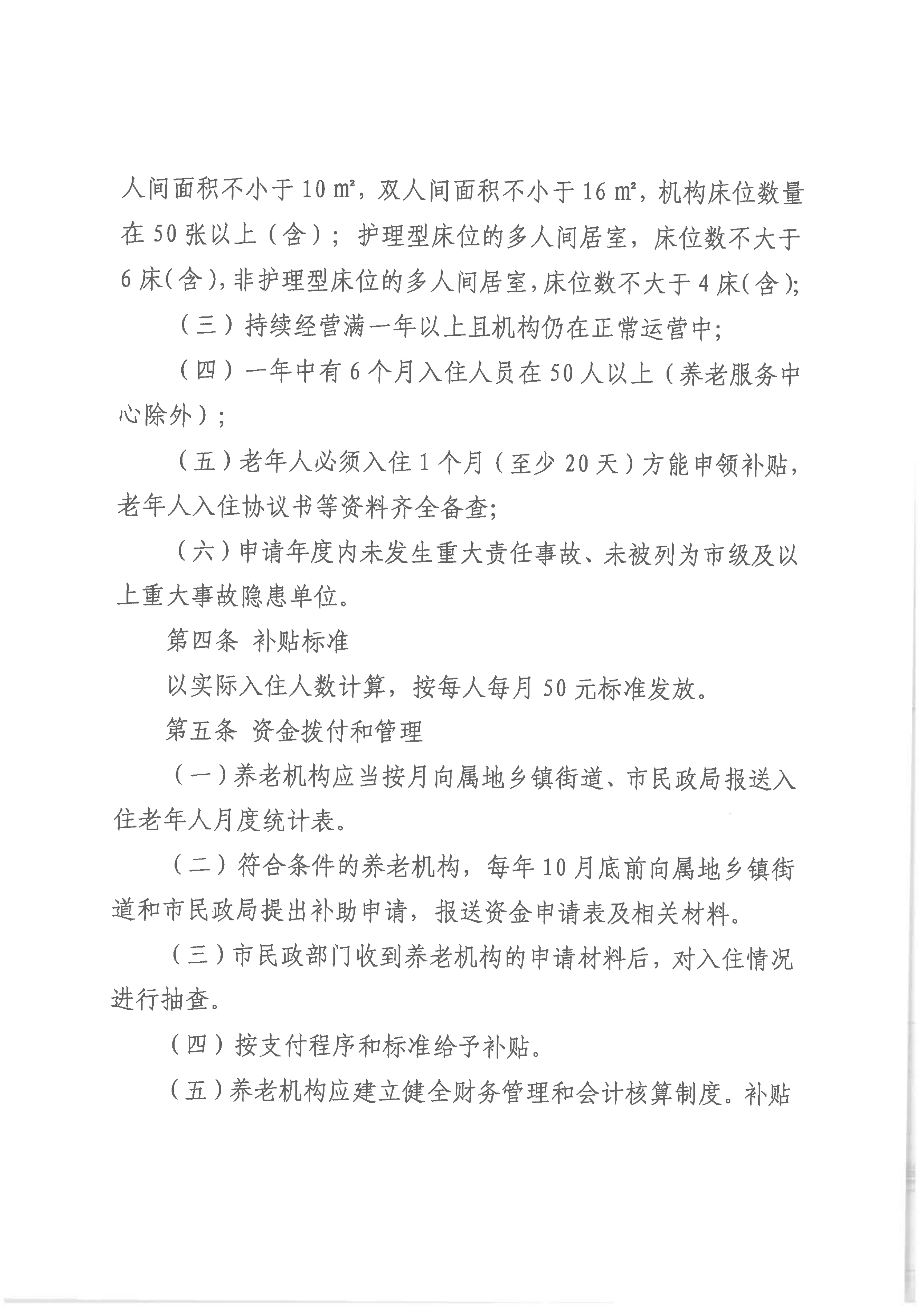 長垣市民政局養老機構運營補貼實施辦法(試行)