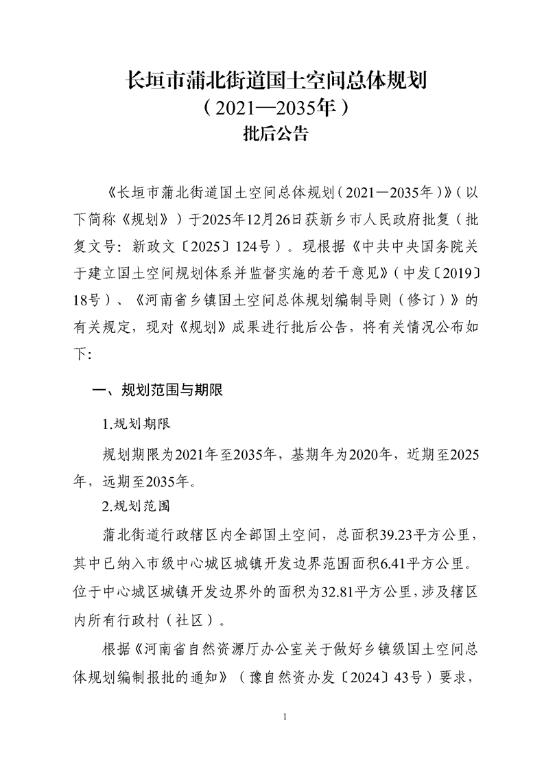 長(zhǎng)垣市蒲北街道國(guó)土空間總體規(guī)劃(2021-2035年)批后公告