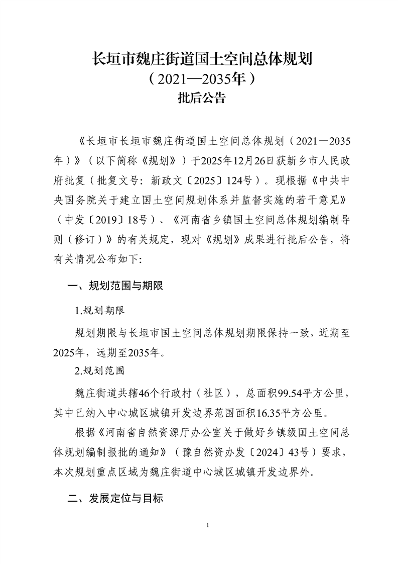 長垣市魏莊街道國土空間總體規劃(2021-2035年)批后公告