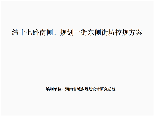 緯十七路南側、規劃一街東側街坊控規方案經市國土空間規劃委員會審定通過,特此公示。